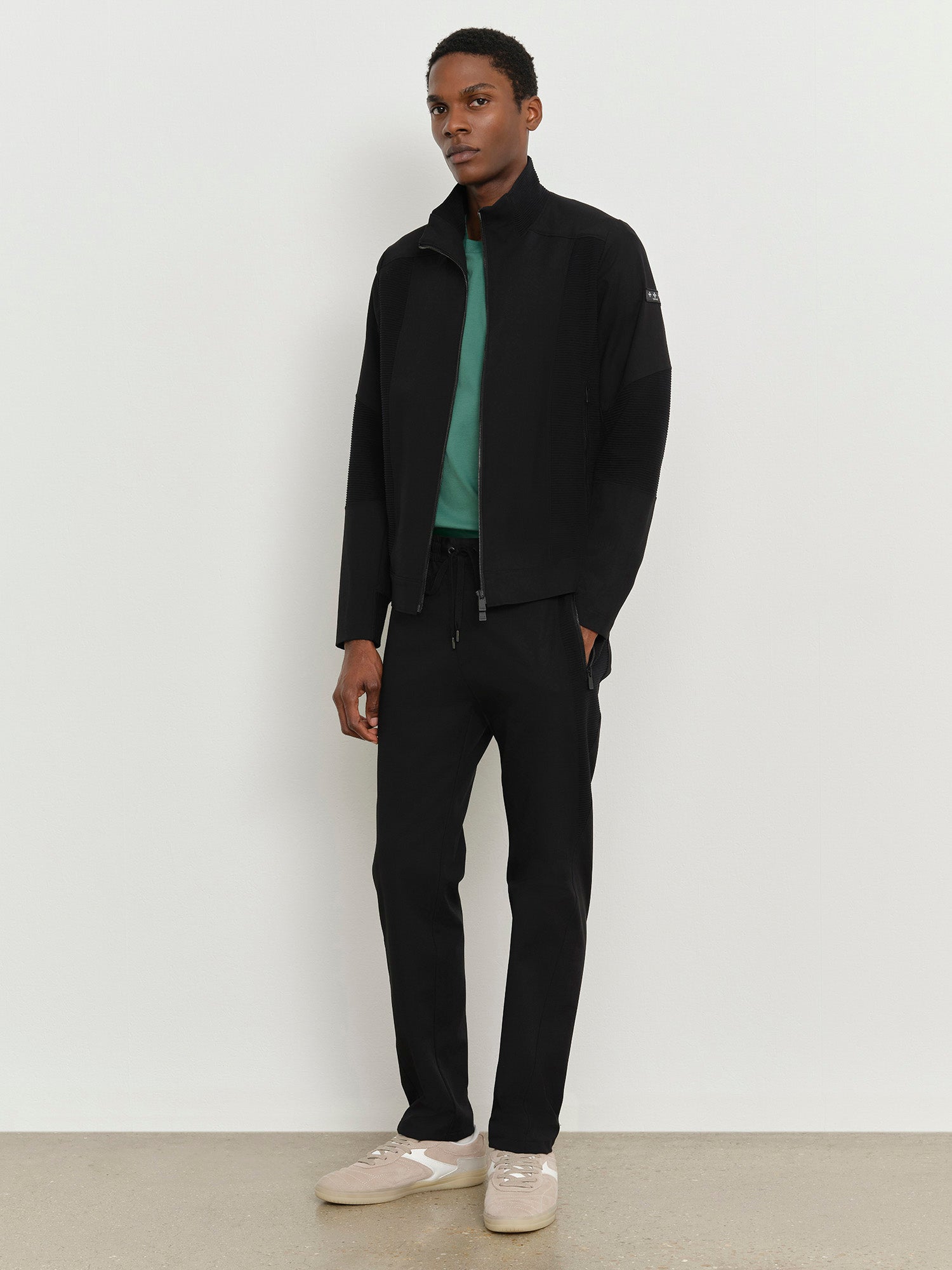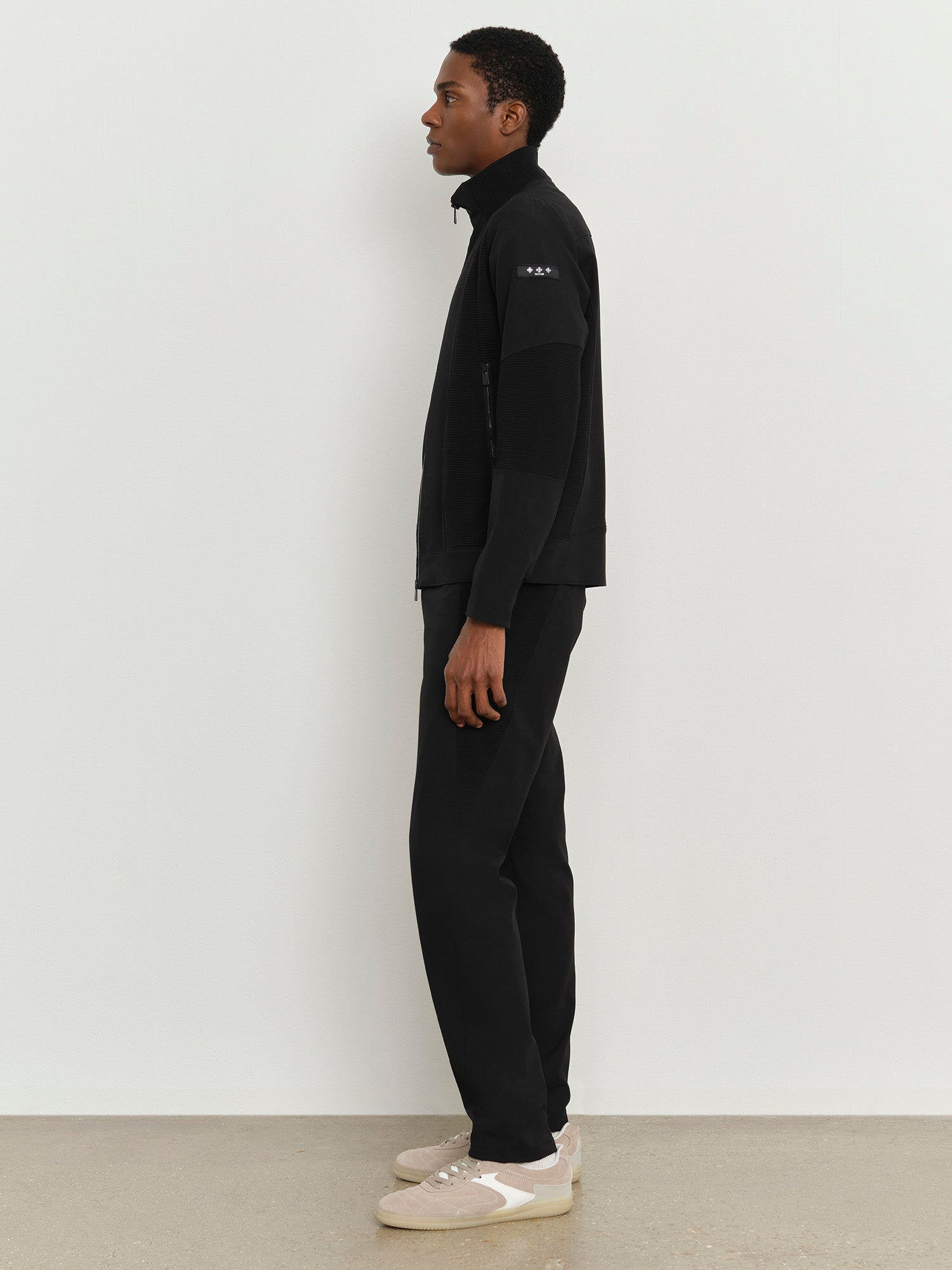 A track jacket elevated with contrasting textures, delivering a sleek and contemporary edge. Kept tonal in color, the mixed materials create subtle depth while maintaining a clean, streamlined look. Polished metal zippers at the front and pockets introduce a touch of luxury, while the double-zip design allows for versatile styling and silhouette adjustment. Finished with a signature TATRAS logo patch on the left sleeve, this piece moves seamlessly between sportswear function and everyday urban style.