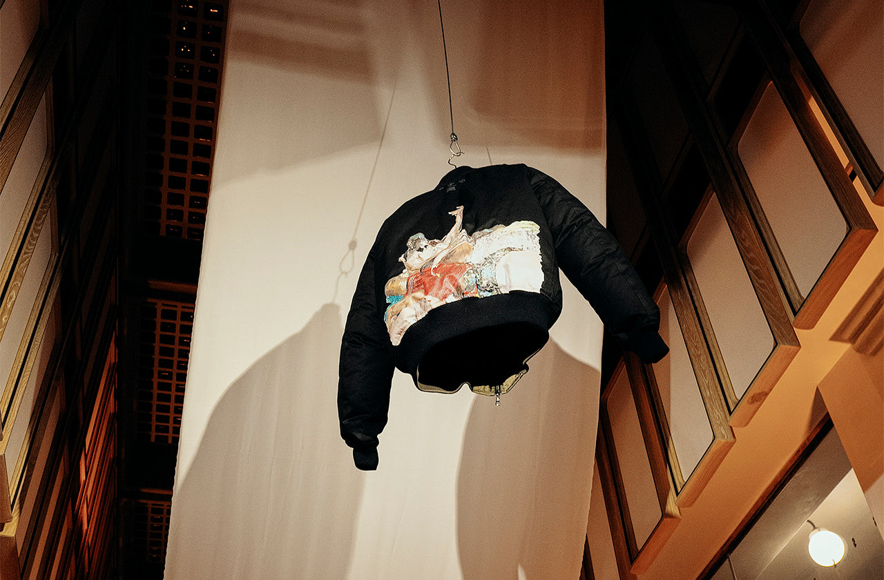 Flendendo l'arte e la sostenibilità, questa collaborazione presenta una giacca reversibile di bomber MA-1 realizzata dall'innovativa Protein ™ e lana di Spiber. Con stampe ispirate alle opere d'art...